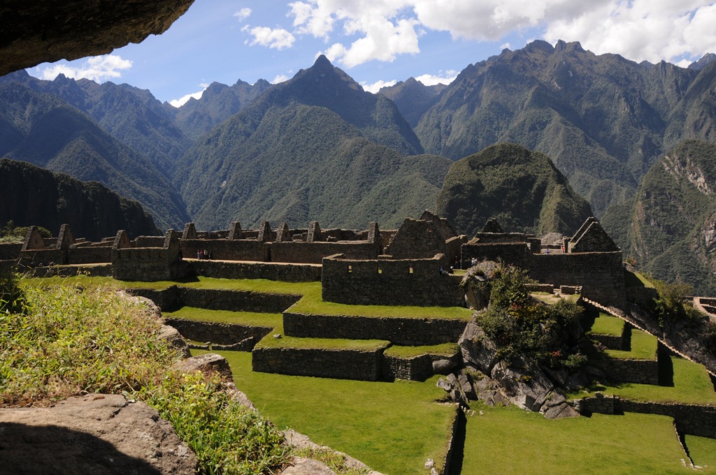 Most of the buildings in Machu Picchu were simply cleared of vegetation but were not restored. There are a few exceptions, buildings where they rebuild the thatch roofs to demonstrate what the buildings would have looked like when the Incans were here.  Talk about a nice view from your bedroom window!