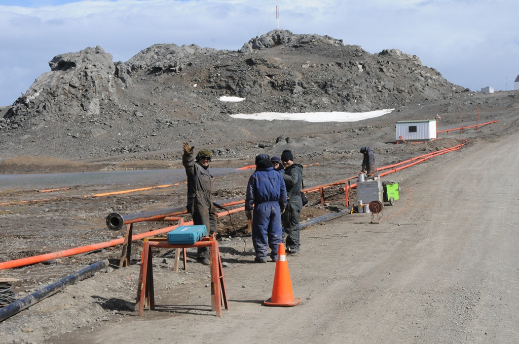 Workers putting in new infrastructure between the airport and the Russian and Chilean settlements on King George Island, Antarctica.