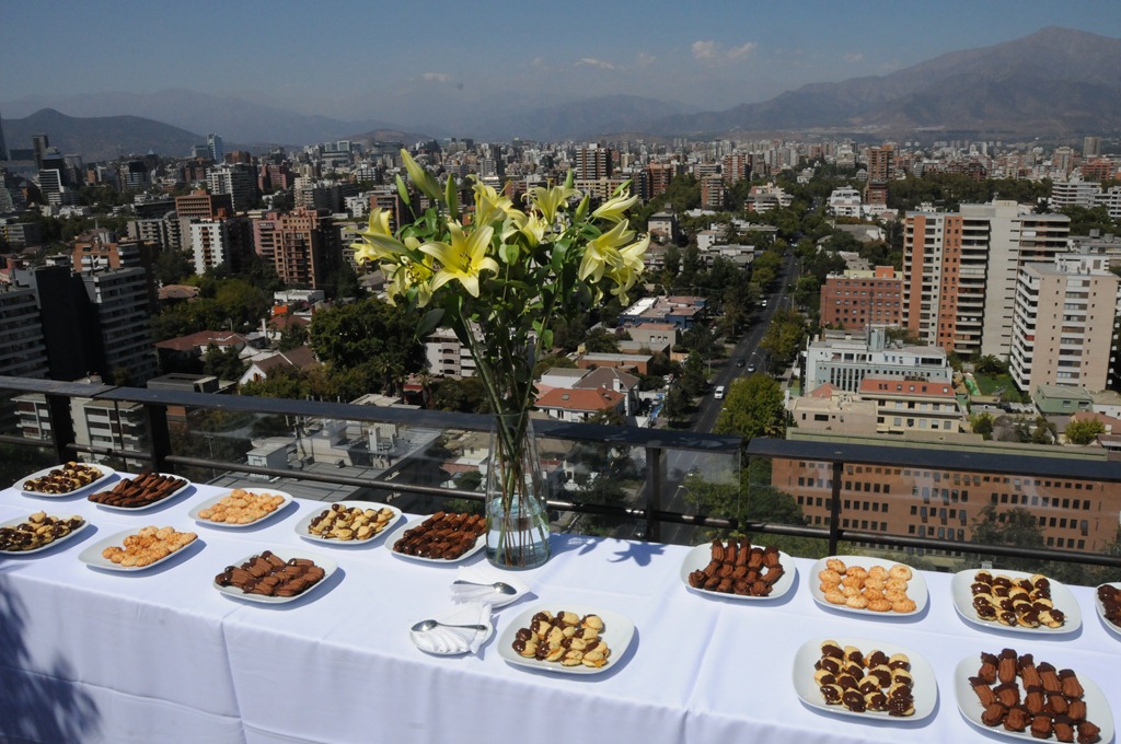 Coffee break on the 14th floor rooftop terrace of the Universidad DUOC, our conference venue in Santiago, Chile
