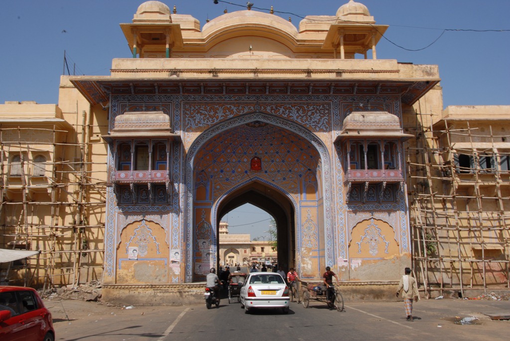 The old city section of Jaipur is completely encircled by a city wall three meters thick and six meters tall. You enter into the city center via one of seven gates. Each gate is more elaborate than the next, and they are mindful about preserving them.