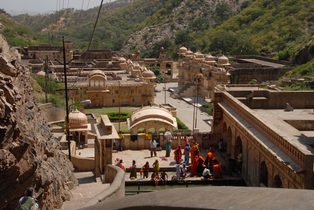 Before leaving Jaipur, we stopped by a temple we had heard of that was famous for its monkeys. This temple is located on an ancient Hindu pilgrimage site known as Galtaji, and is often referred to as the Monkey temple (Galwar Bagh.)