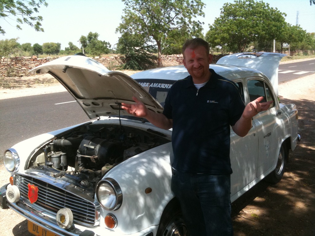 We arranged for a car and a driver to take us around India. Not just any car, mind you, but a classic Indian car known as an Hindustan Motors Ambassador.