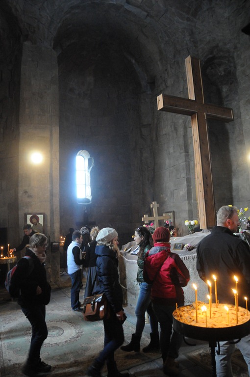 Built sometime between the years 590 and 605, the Great Church of Jvari at the monastery is small and unimposing, but with an almost palpable feel of history emanating from its walls. Inside the church, I was hit with the smell of candles, and witnessed the devout praying by the rock formation that held the original cross.