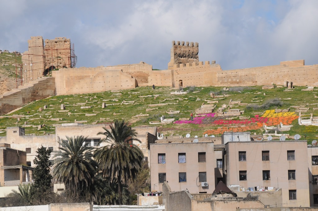 Leather tanning is big business in Fes, and has been for centuries. If you look closely at the hillsides above the Medina you can spy the brightly colored dyed hides drying in the sun.